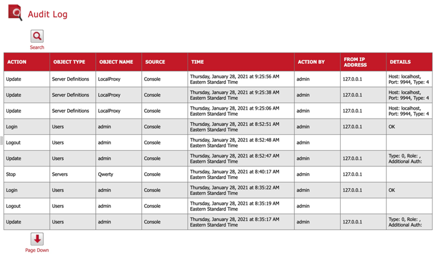 The audit log provides a comprehensive audit of all changes to security sensitive objects within the Composable Agentic Platform console. The audit log contains information about security changes to users, roles, extensions, server definitions and more.