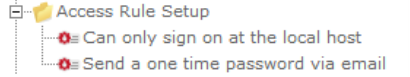 Access rules are plug-ins used to alter the way the logon process for the console is managed for individual users. Examples of access rules are local system only and email one-time passwords.