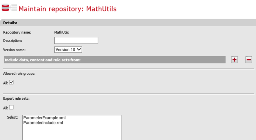When another repository includes this particular repository, the only rule set available will be names “Quick Add” and will be found in the “Math” group as specified on the Rule Info tab.