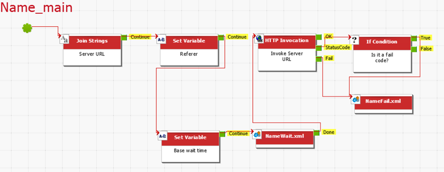 It is important to notice how the THREAD\_NO variable is used to pick a line in the CSV file. The THREAD\_NO is incremented for every stress testing agent and should the number exceed the number of entries in the CSV file, the rule will start reading from the beginning again.