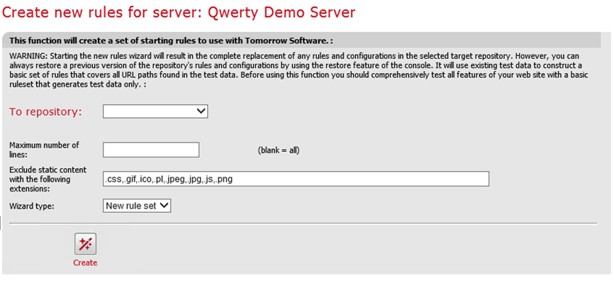The rules wizard creates a large number of files, so we strongly recommend that you create a new repository to write the new files to.