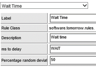 The wait rule set page is used to define wait times. This delay can be fixed, or it can be a function of the recorded wait time during rule set creation.