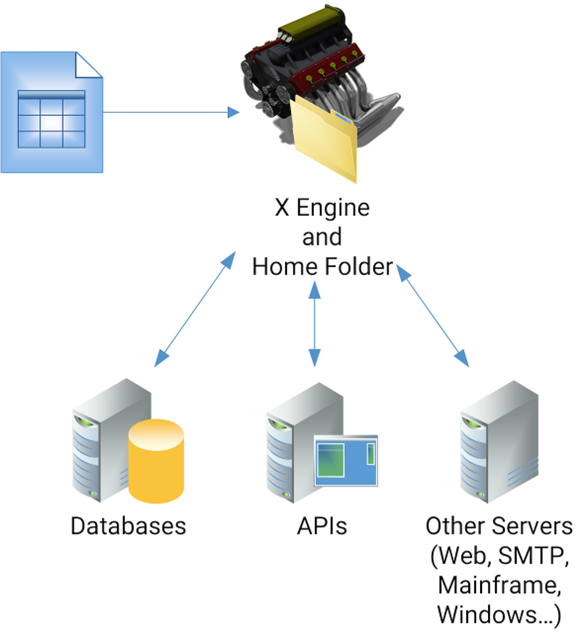 In its simplest form, the <code class="expression">space.vars.X\_Agent\_Name\_Single</code> receives data from a file *(CSV, XML, Spreadsheet)* and processes it by interacting with databases, APIs or other servers.