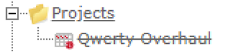 Once a project is completed, it should be closed. Closing a project results in any associated tasks also being closed and the project is listed with a strike-through line in the administration tree: