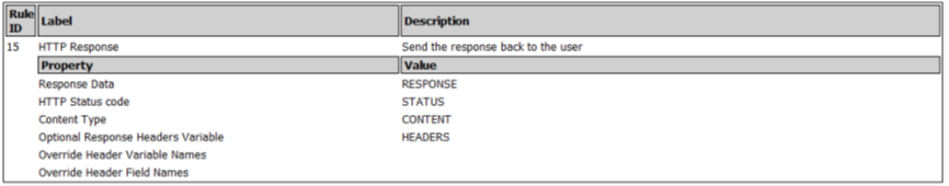 We have only one final step to complete the rule set, we must return the changed response to the user. This is done with the HTTP Response rule: