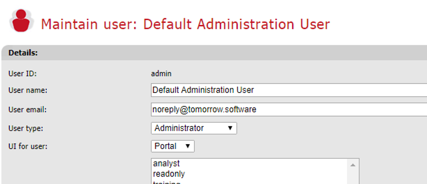 <figure><img src="https://2423451286-files.gitbook.io/~/files/v0/b/gitbook-x-prod.appspot.com/o/spaces%2F42mDa58RoaDxb6t8mbaI%2Fuploads%2Fgit-blob-2a0f06262640dc8010fc8175ad6cca72908eef1f%2Fimage.png?alt=media" alt=""><figcaption><p>Default Administration User</p></figcaption></figure>