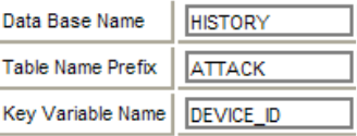 An open record is written to an index table *(whose name will start with “ATTACK” and which will be found in the “HISTORY” database. Should the table not exist, it will be created).* A record of all the fields presently available for rules is also stored in a data table *(using the same creation conditions as the index table).*